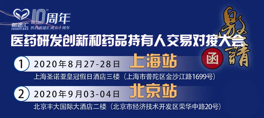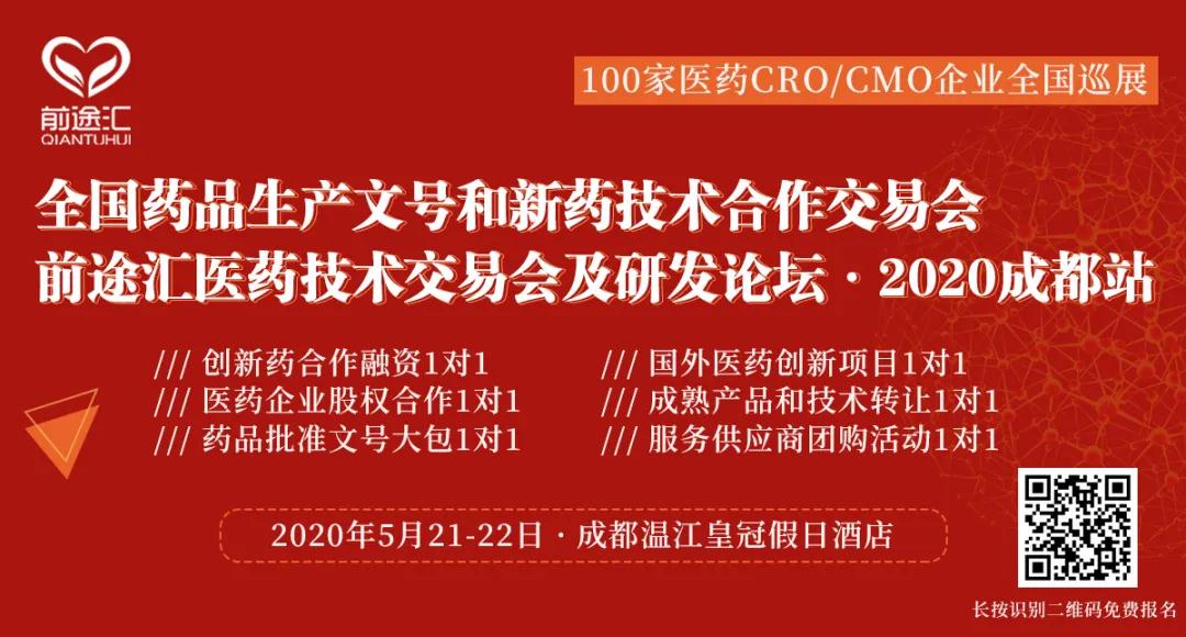醫藥前途匯:醫藥研發合作、醫藥投資并購合作大平臺,交流醫藥研發國際化創新,看龍頭CRO項目路演,對接200家CRO在研項目,解決企業新藥研發需求,挖掘優質投資并購標的,買賣藥品生產批件。請關注前途匯2020年10月14-15日廣州、12月1...